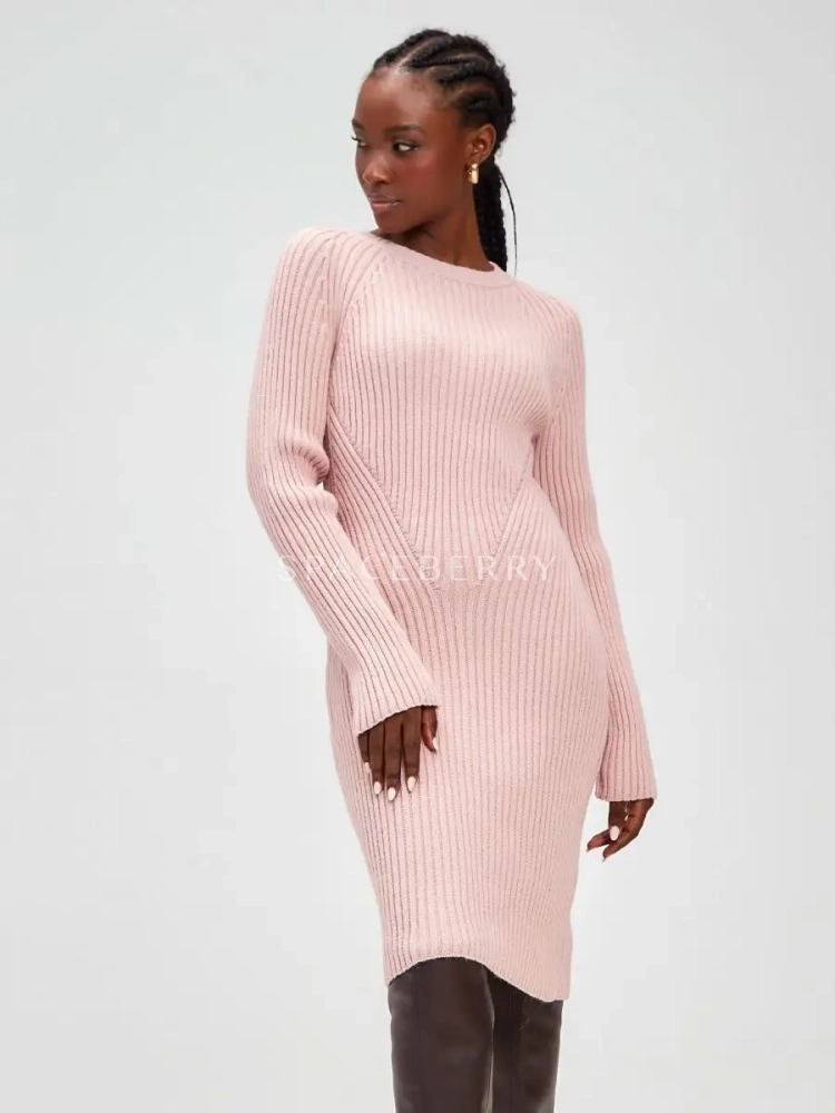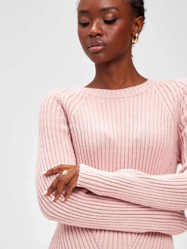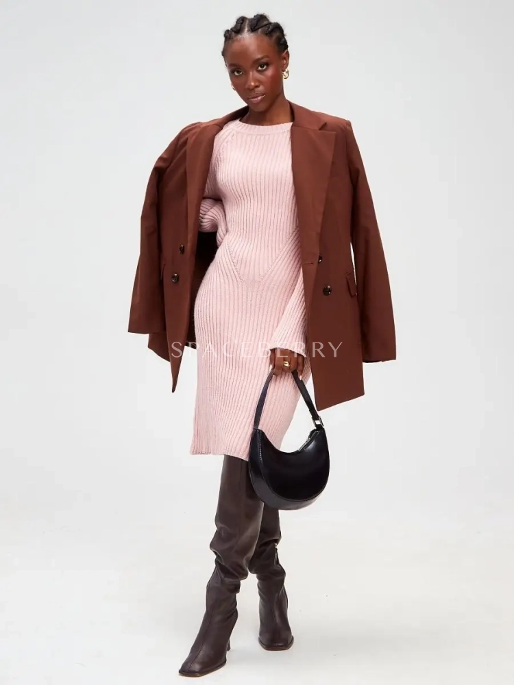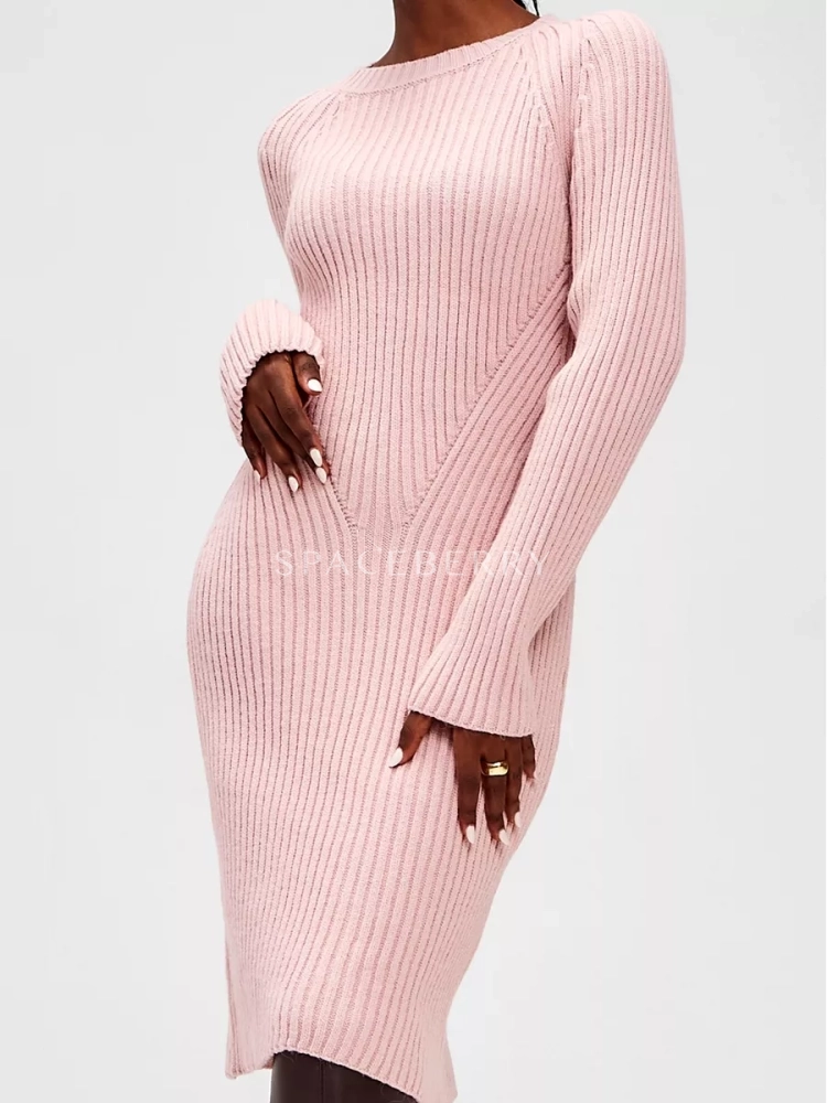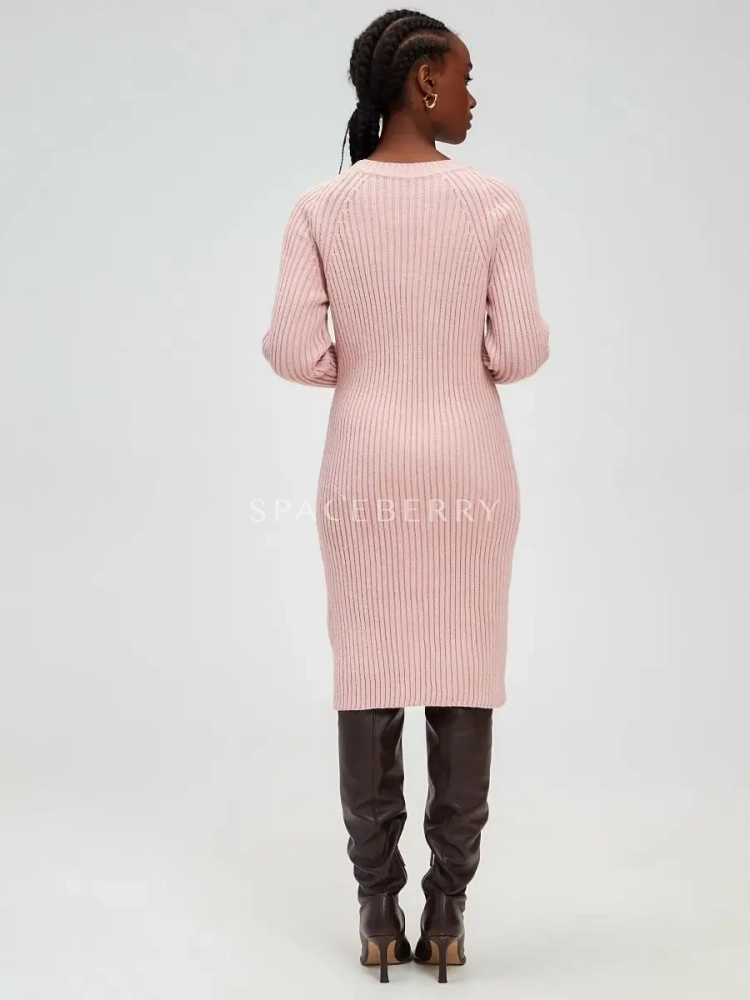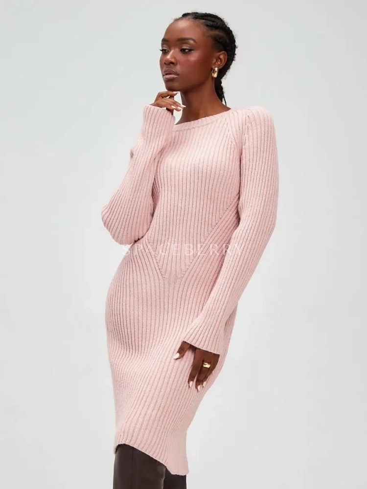 Женское теплое вечернее вязаное платье (пудровый) в Полярном