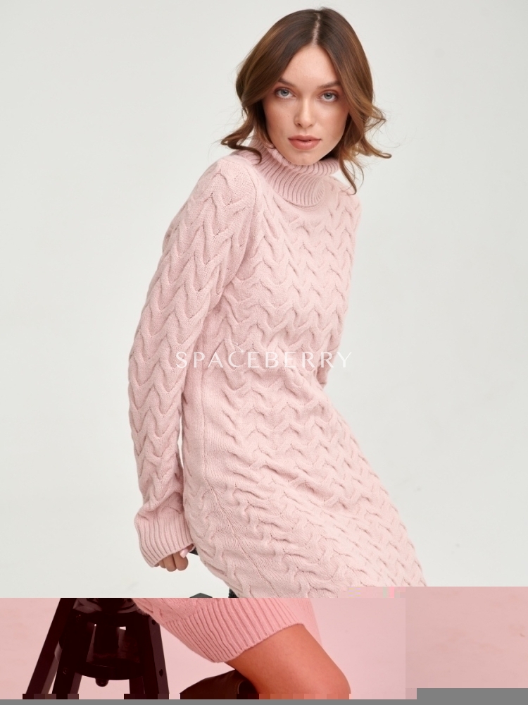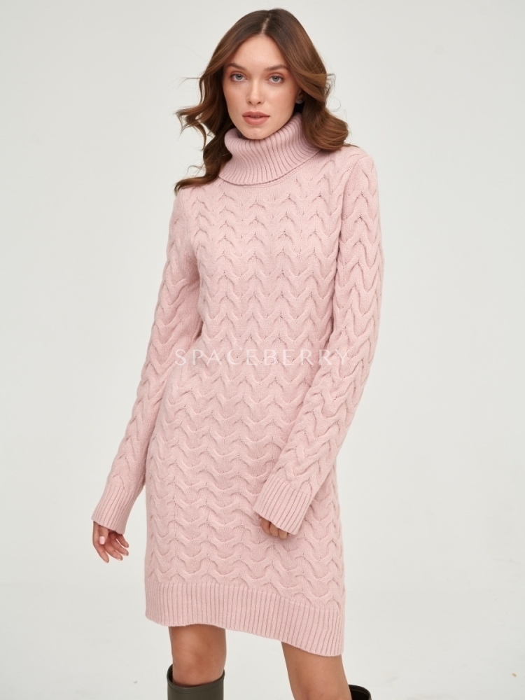 Женское теплое вечернее вязаное платье (пудровый) в Полярном